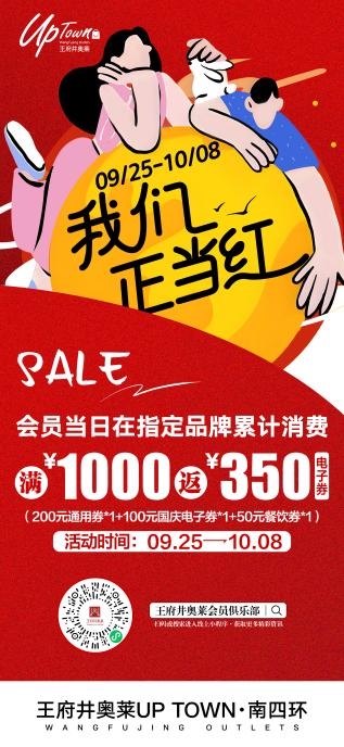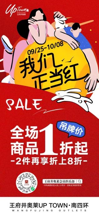 王府井奥莱uptown:即日起-10月31日,十月《咱们正当红》系列活动蓄势待发,“逛吃买玩”打包好,扣头、新店、趣活动全拉满!10月1日、4日摩登红人巡游活动,10月2日、3日街舞应战赛事活动,10月5日、6日邀约国潮乐队参与演绎“月下”音乐会,10月6日18:00、19:00、20:00嫦娥奔月特技演绎活动 ,10月7日、8日联动周边社区宠物爱好者社群落地展开宠物运动会、宠物阛阓、宠物沙龙等活动,双节缤纷活动趣玩。10月1日-10月19日,当红金秋折上献礼,全场1折起,2件再享8折(单柜参与折上折,特别、特例产品及租借柜在外)。10月1日-10月8日,团券抢先屯福利红透十月天,450团500、630团700、880团1000(详细信息详见场内)。福利多多,不容错失!