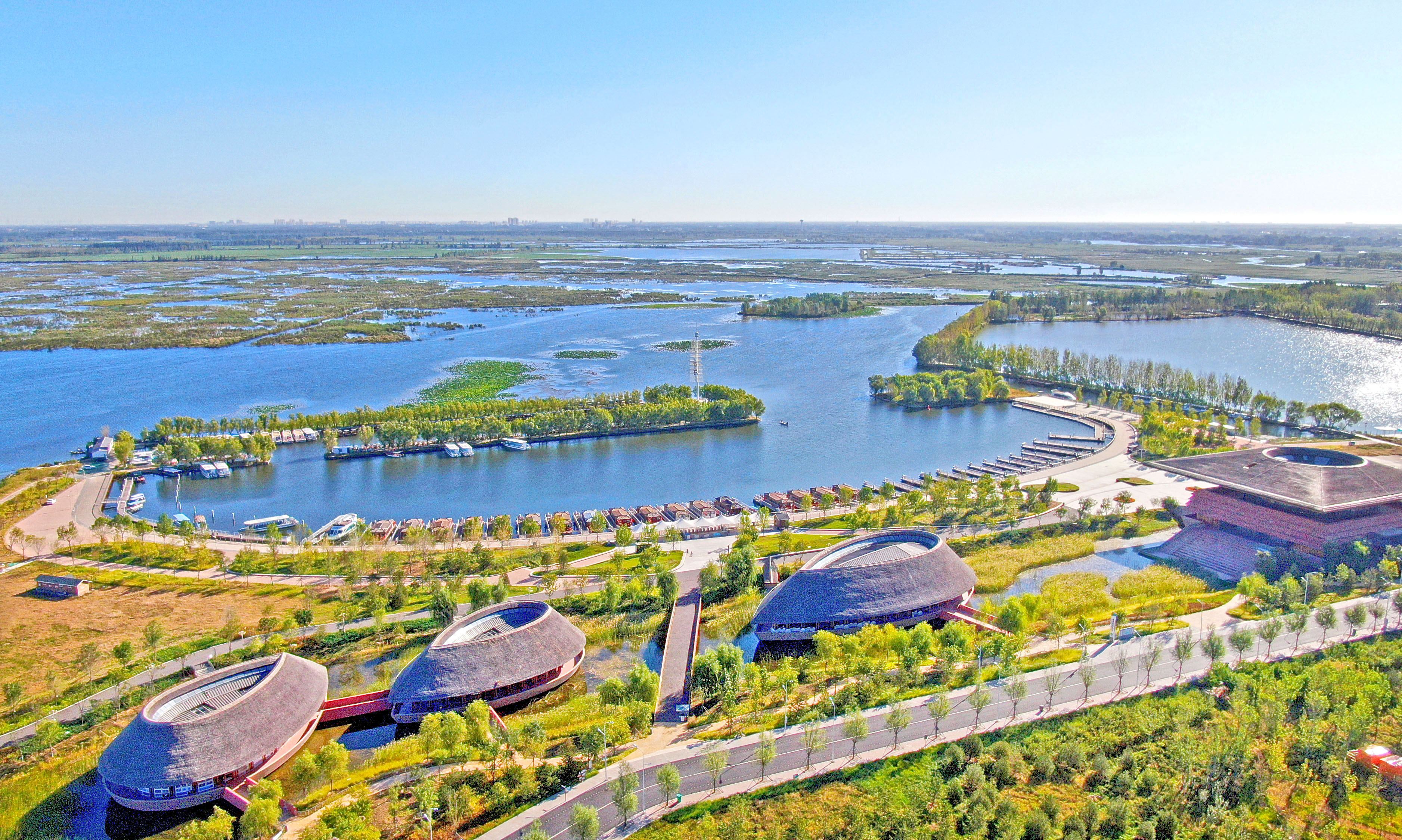 清晨的白洋淀,碧空如洗。荷叶在微风中悄悄摇曳,游船划过清澈的水面,留下道道涟漪。